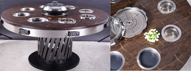 Mesa de parrilla comercial Samgyupsal sin humoNuestra parrilla Samgyupsal comercial sin humo, diseñada para restaurantes coreanos de barbacoa. Sistema de control de humo integrado, materiales duraderos y una experiencia gastronómica moderna.